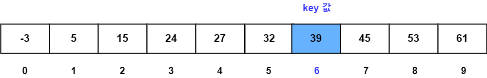 A [7] (45) > key (39) 이므로 배열의 왼쪽 구간을 탐색 범위로 정한다.