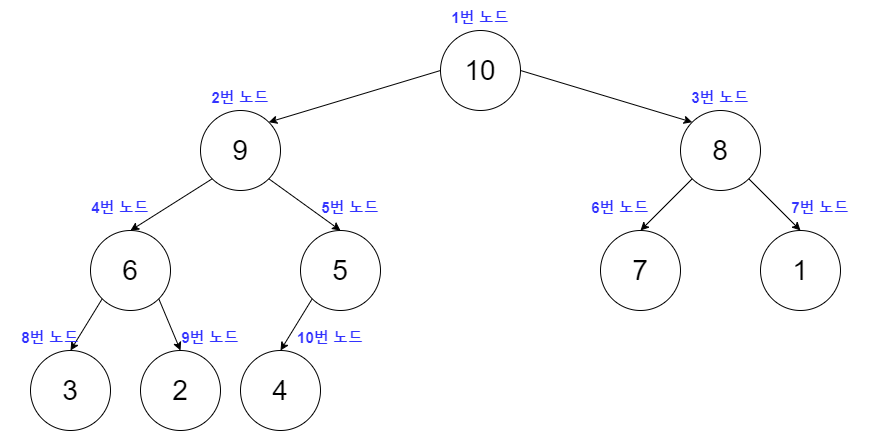 이를 배열 형태로 늘어서 보면 1번 노드부터 10번 노드까지 Index에 순서대로 넣는 형태가 된다.