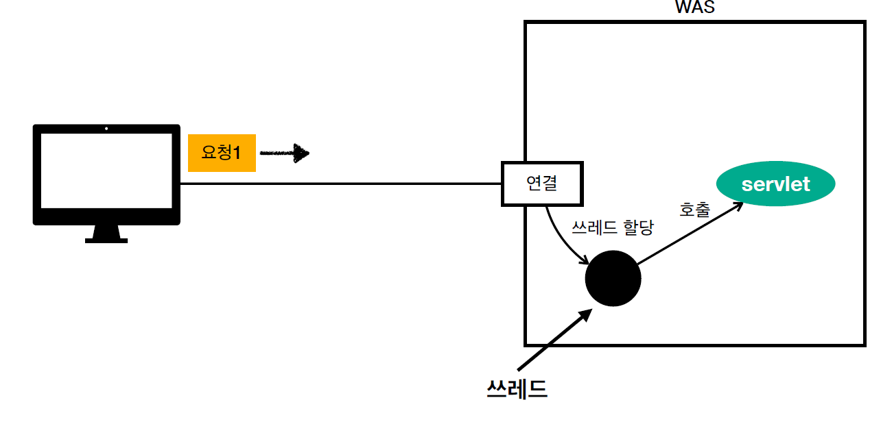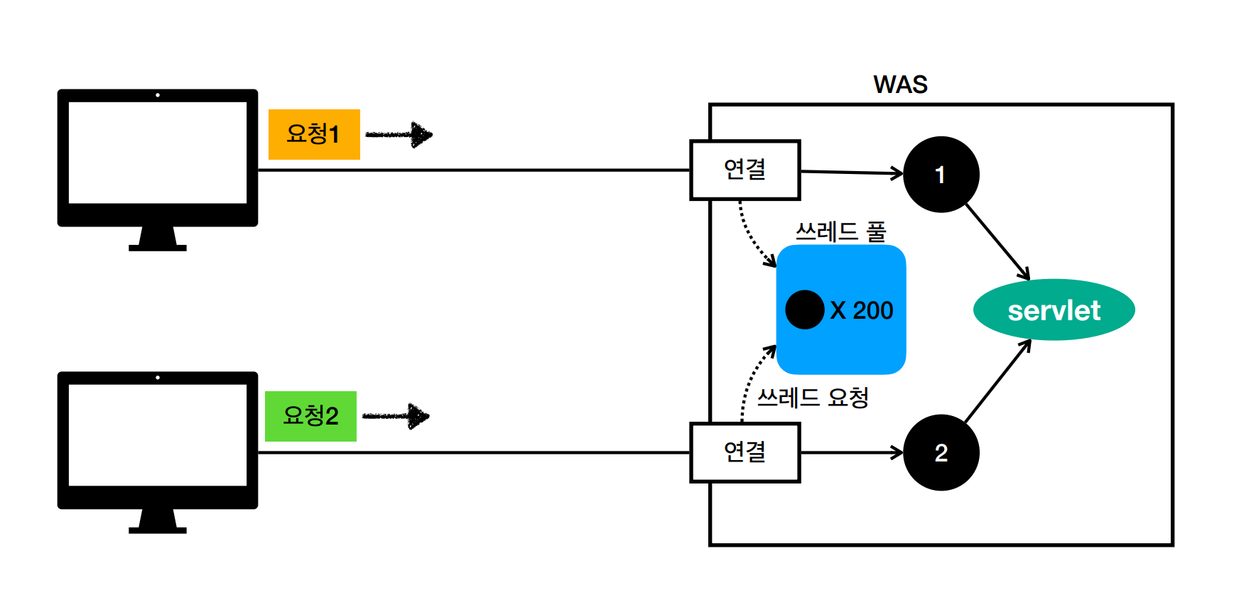 - WAS는 이 요청에 놀고 있는 쓰레드를 할당해 준다.