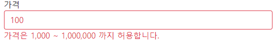 상품 생성시 가격설정을 천 원 이상 백만 원 이하, 문자가 들어오면 검증 오류처리하는 요구사항이 있다고 가정한다.
