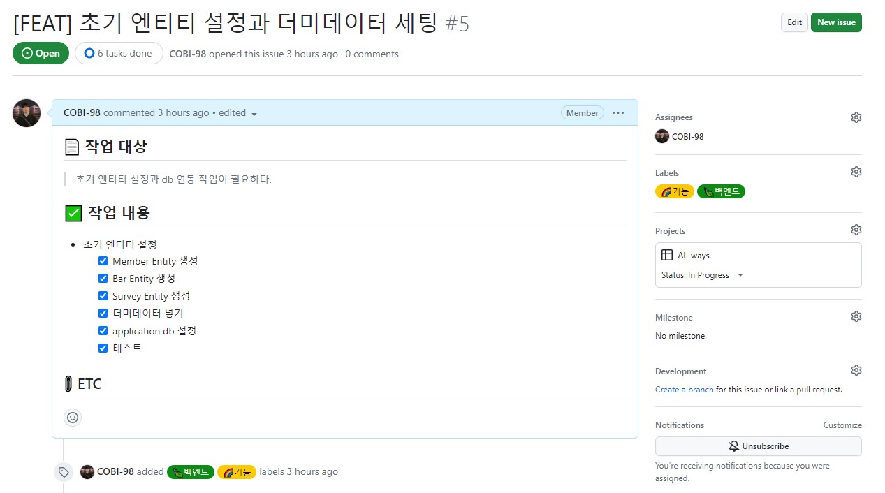 먼저 프로젝트의 기획, 작업, 개선 사항, 버그 수정, 새로 추가될 기능 등 모든 것을 이슈라고 칭하고