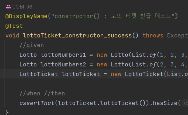 해당 코드를 진행하니 로또 클래스의 직관성과 관리하기 쉬운 코드를 작성한 것 같습니다.
