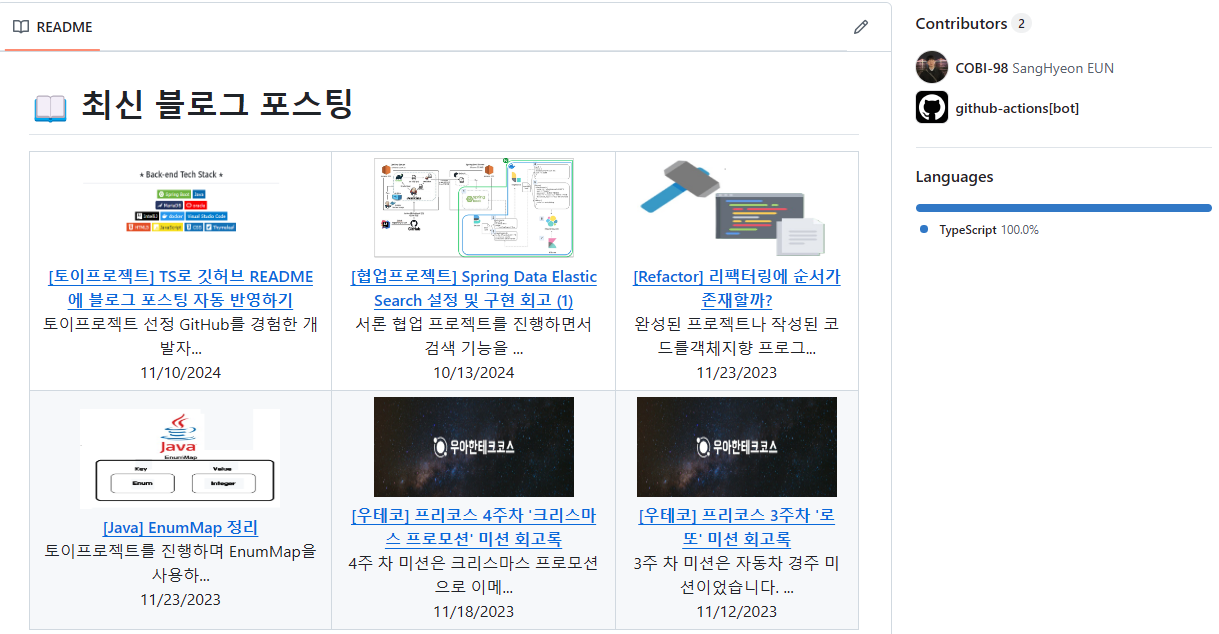 깃허브 프로필에 블로그 포스트를 효과적으로 노출하는 방법을 찾을 수 있었고,
